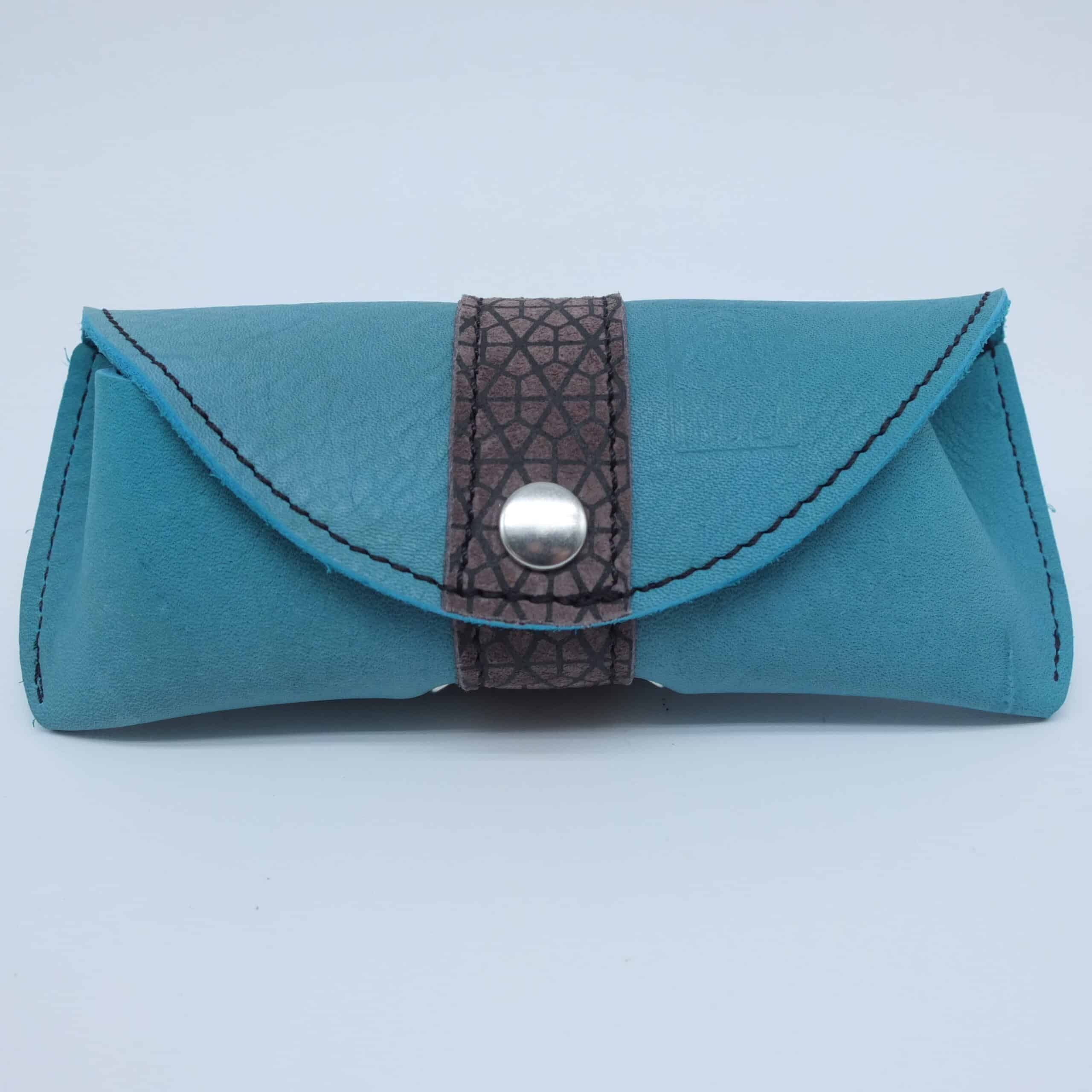 Adoptez cet étui à lunettes en cuir bleu avec bande gris sérigraphiée, aux dimensions 17 x 7 x 1 cm, et offrez à vos lunettes un écrin élégant, fonctionnel et fabriqué dans une démarche artisanale responsable. ✨