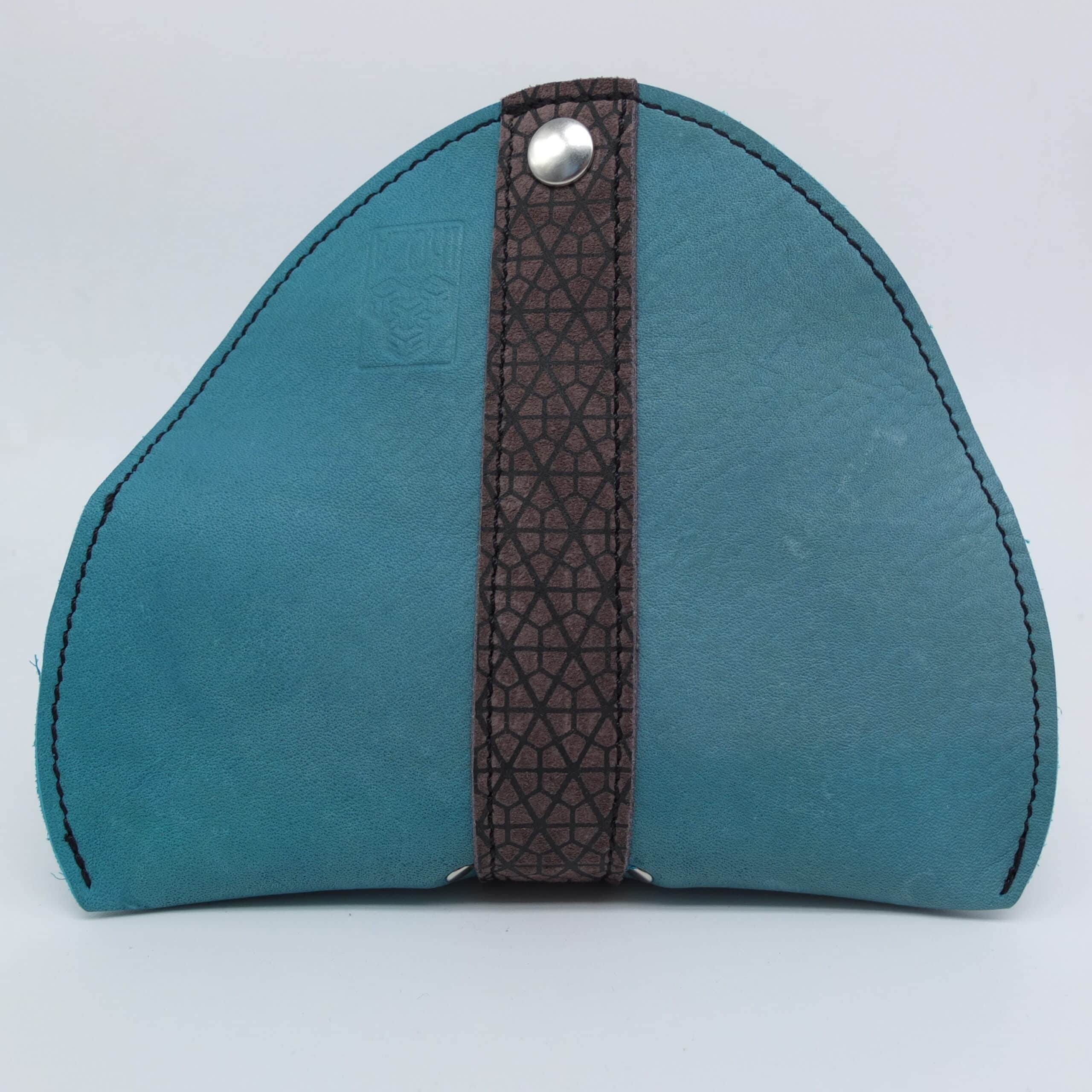 Offrez à vos lunettes une protection alliant artisanat et style avec cet étui en cuir bleu, sublimé par une bande gris sérigraphiée aux motifs géométriques. Conçu à la main avec des matériaux haut de gamme, cet accessoire assure une protection optimale tout en apportant une touche d’originalité.