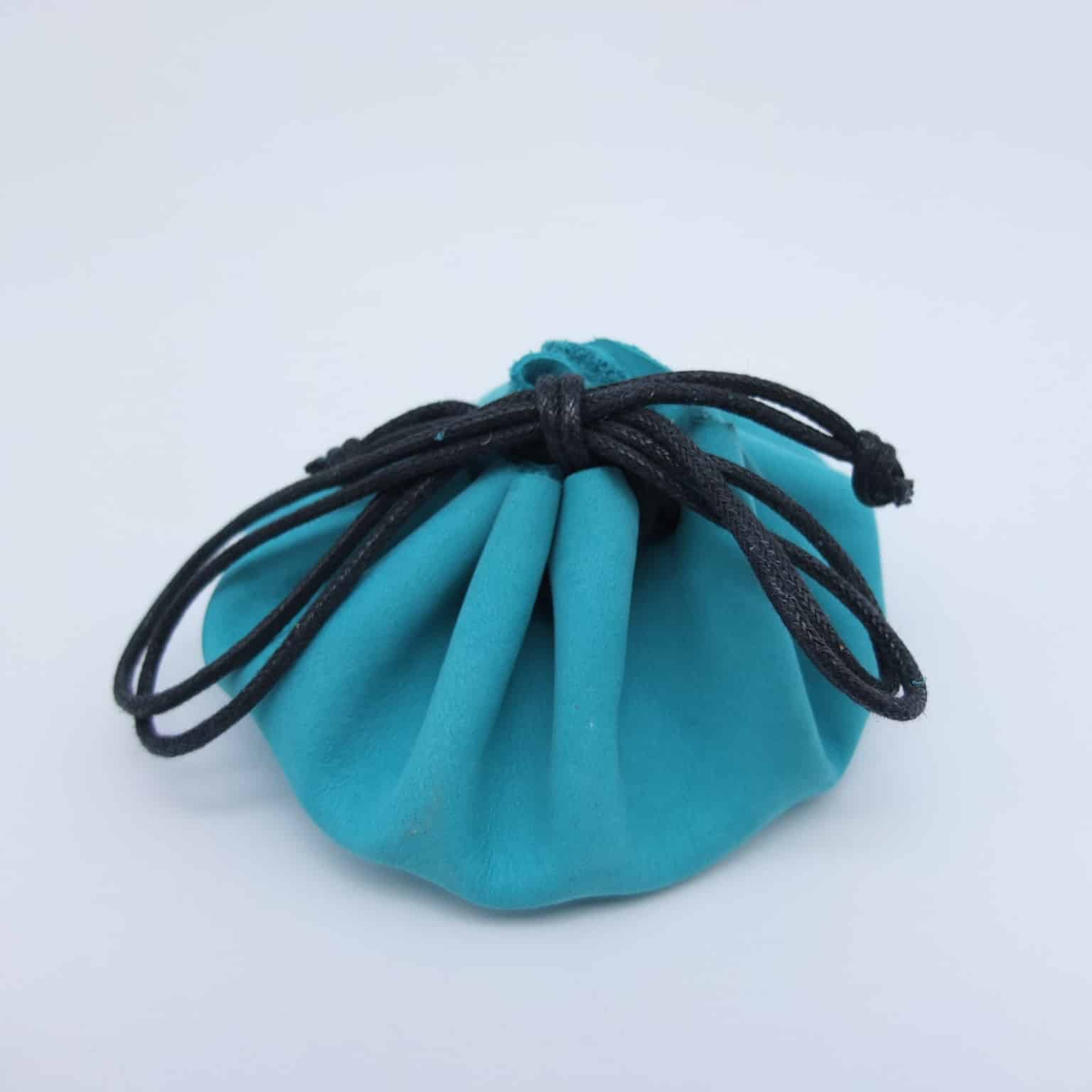 Ajoutez une touche de charme artisanal à vos accessoires avec cette bourse en cuir bleu turquoise. Pratique et élégante, elle se transforme facilement en tapis de jeu grâce à son ingénieux design, faisant d’elle un accessoire polyvalent pour transporter et jouer avec style.