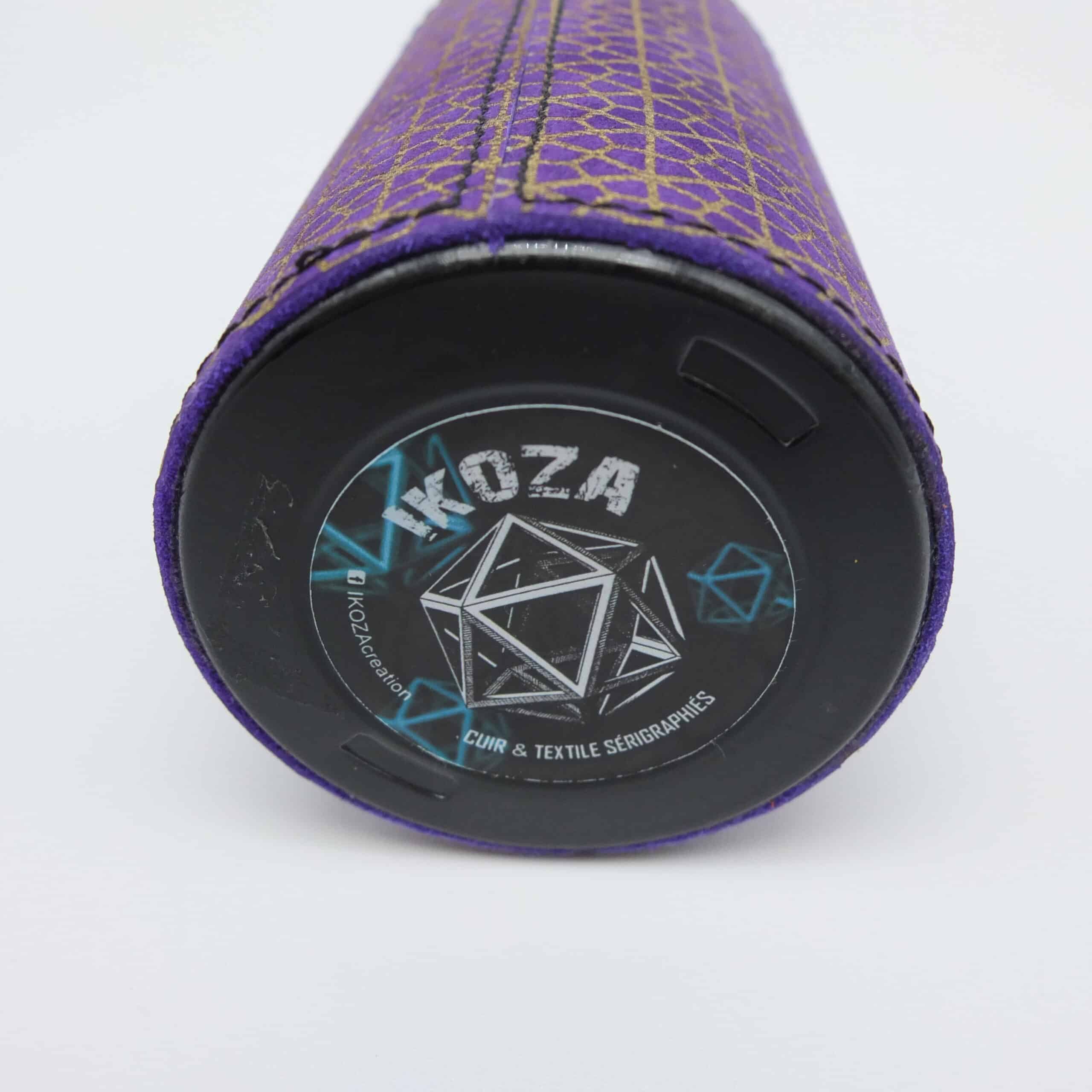 - Cuir violet : Confectionnée en cuir véritable, elle offre une protection élégante et une prise confortable. Le motif sérigraphié apporte une touche moderne et originale.