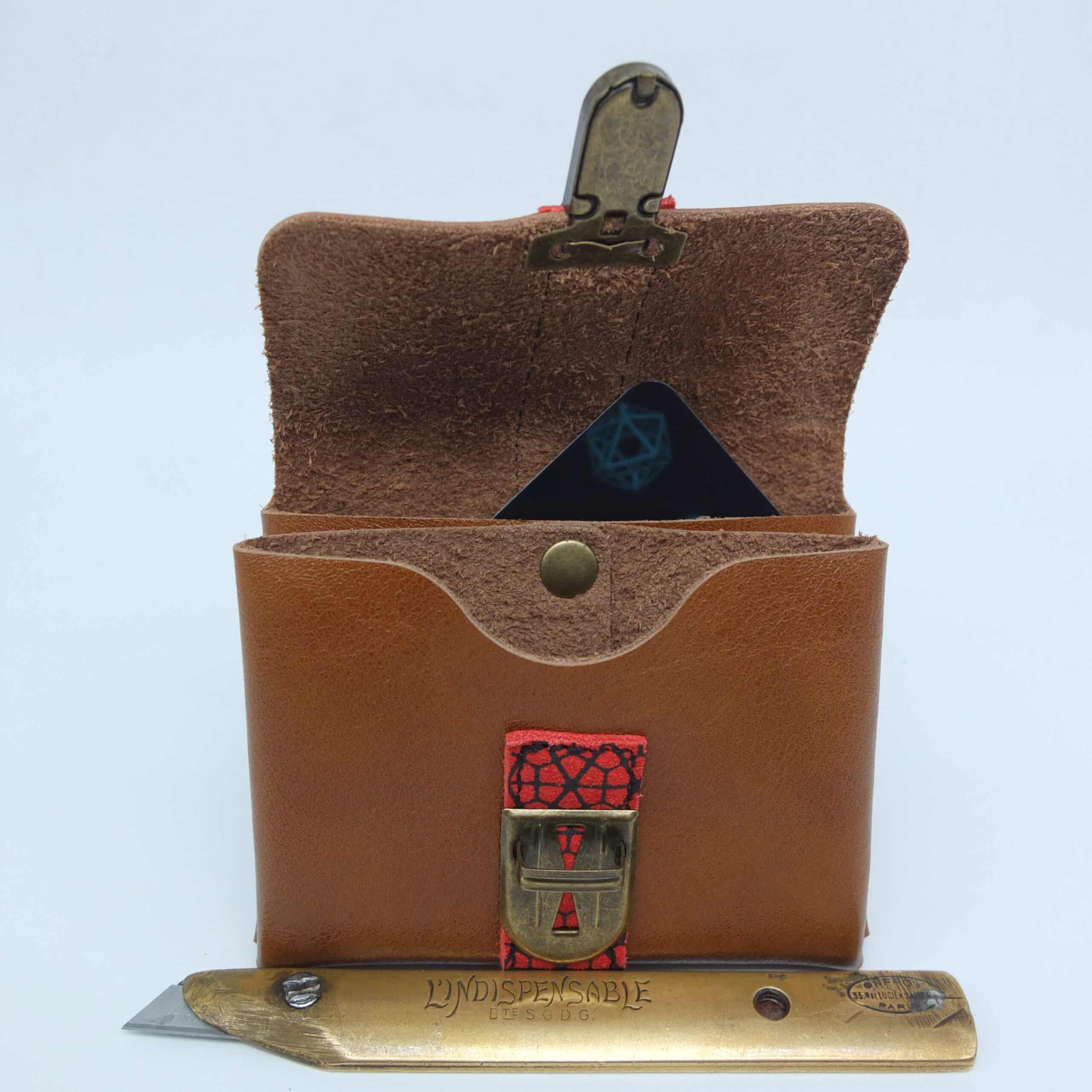 Porte-cartes en cuir marron avec bande rouge sérigraphiée – Élégance et praticité