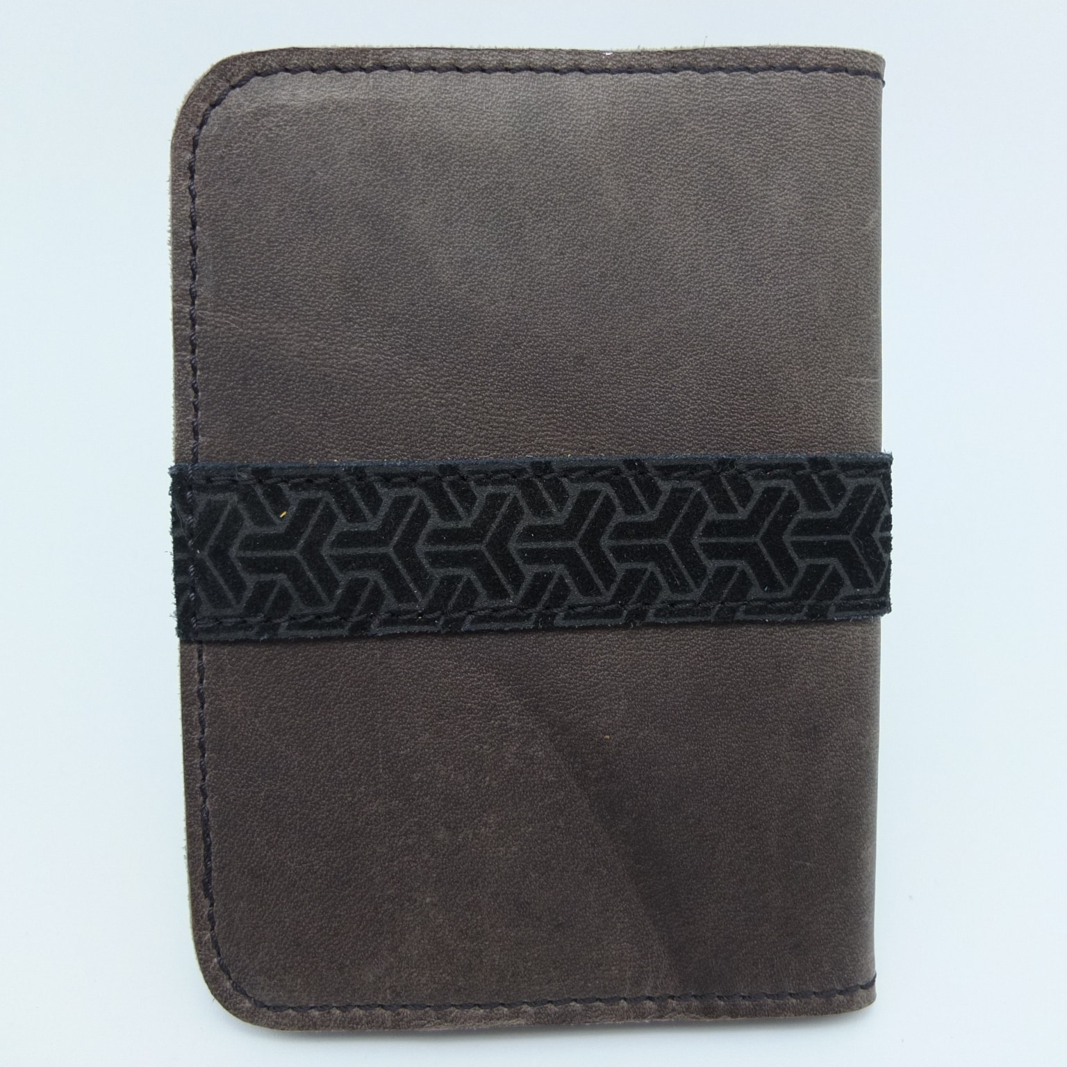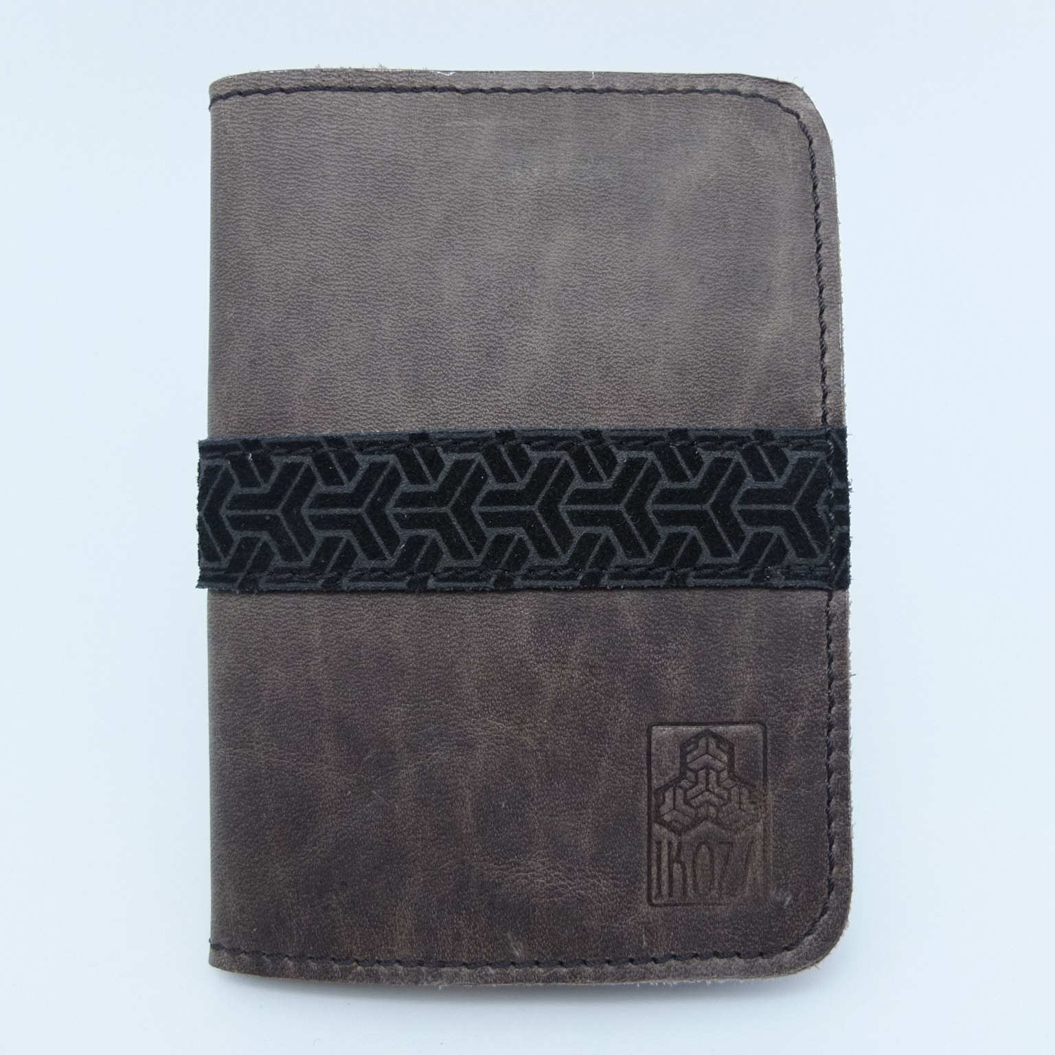 Porte-passeport en cuir gris foncé avec bande sérigraphiée noir – Élégance et praticité artisanale