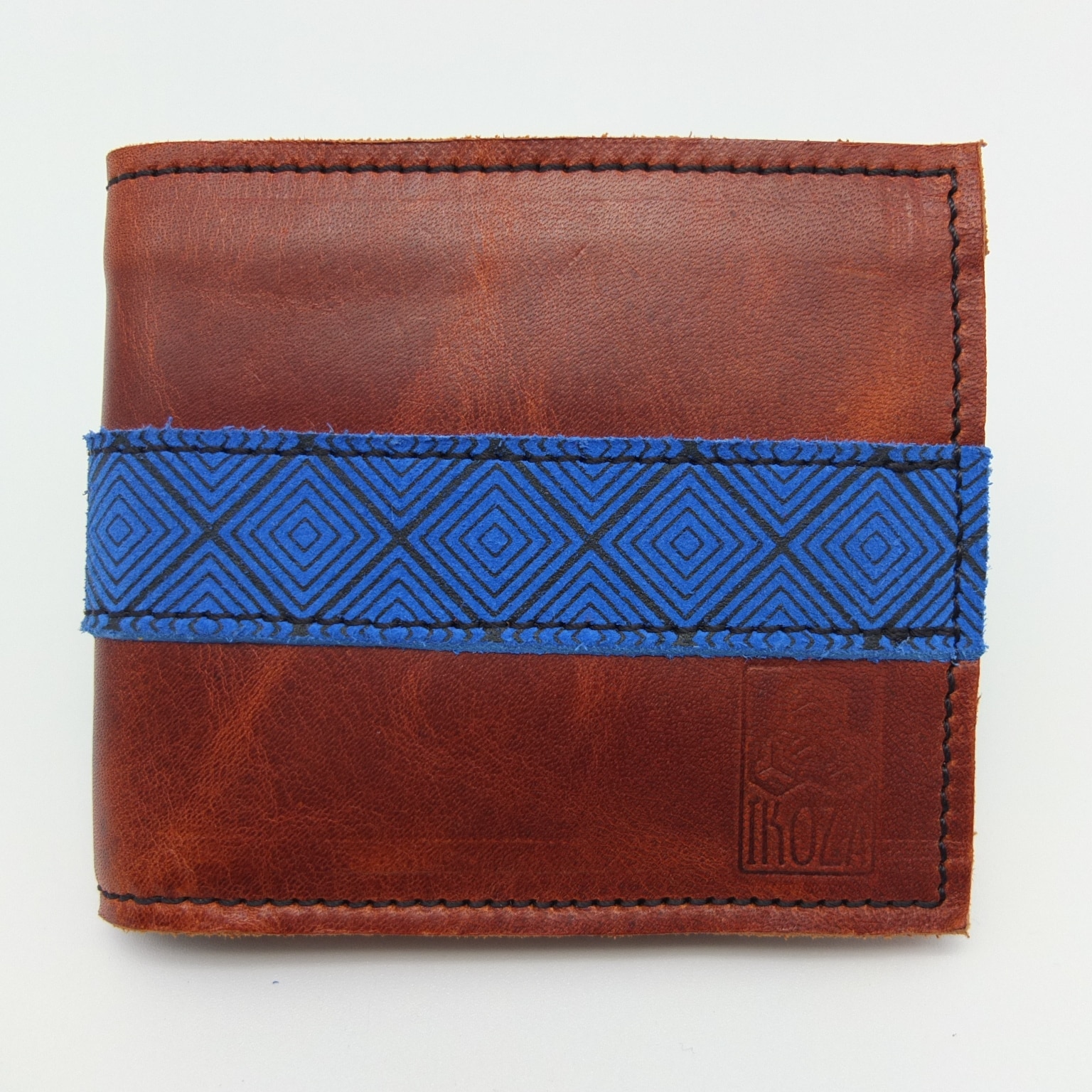 Réalisé en cuir véritable marron provenant des fins de série des maisons de luxe, ce portefeuille reflète l’engagement d’Ikoza pour des matériaux haut de gamme et responsables. - Motif géométrique sérigraphié à la main :